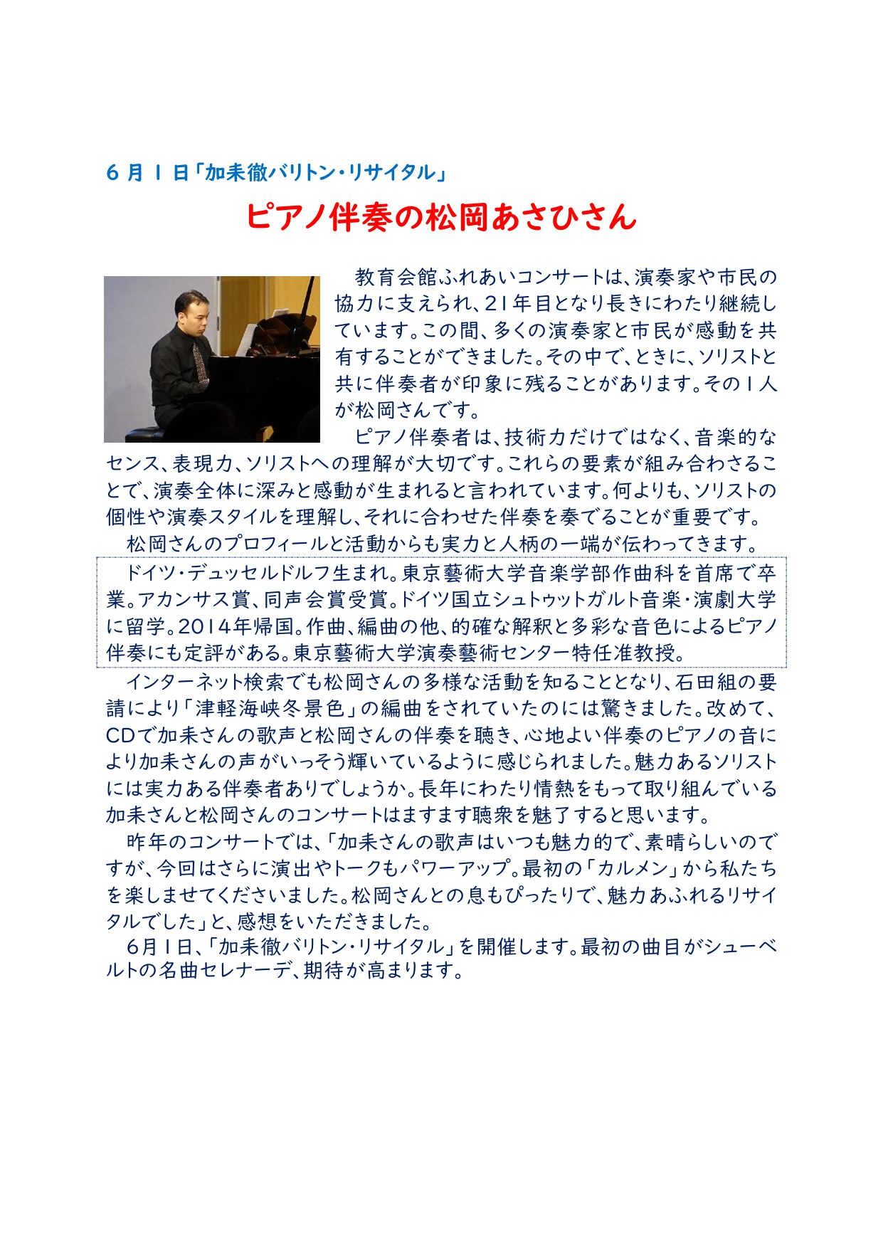 〇12月12日「事務局雑感」更新。〇「第102回教育会館ふれあいコンサート 山下伶クロマチックハーモニカコンサート」感想掲載。