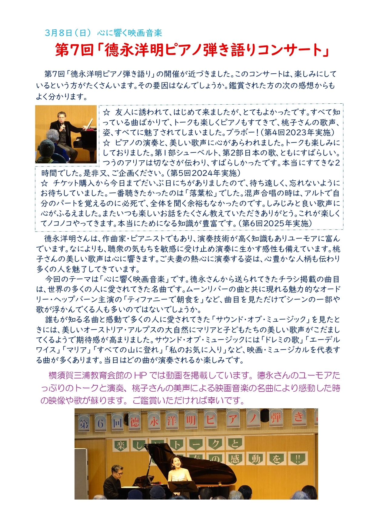〇「2026年度教育会館ふれあいコンサート会員募集」