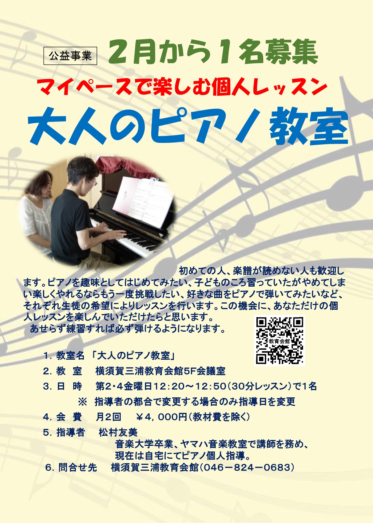 〇1月23日「事務局雑感」更新。〇「教育会館サロンコンサート コ永洋明ピアノ弾き語り」掲載。